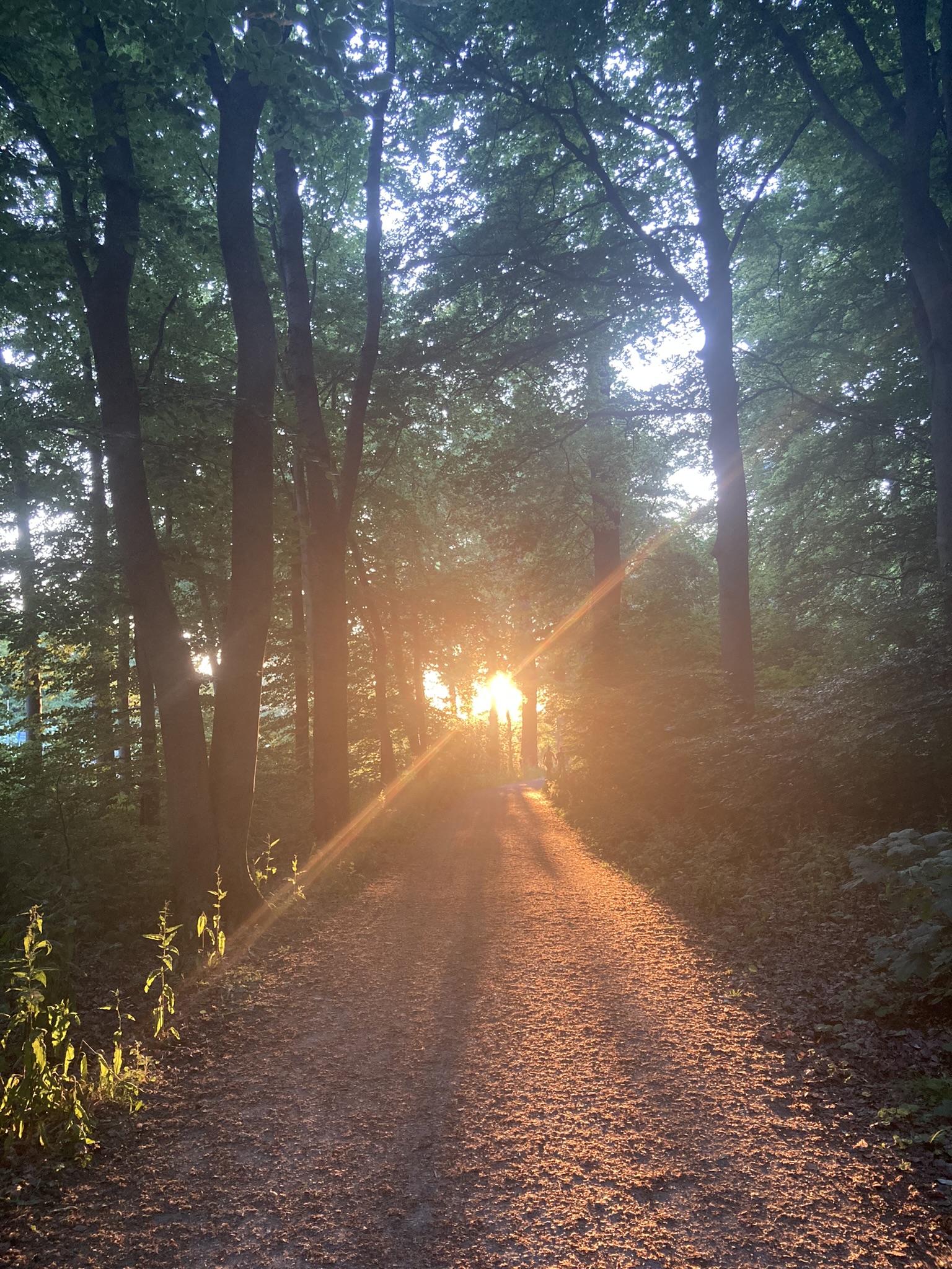 Wandelen op landgoed Amelisweerd bij de ondergaande zon De Dom beklimmen